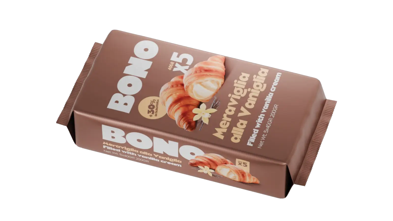 Croissanti i butë dhe aromatik është i mbushur me një krem vanilje të pasur, duke krijuar kombinimin perfekt të brumit të lehtë me shijen e butë dhe të ëmbël të vaniljes. Ka një teksturë të butë dhe është i mbushur me krem vanilje të cilësisë së lartë.